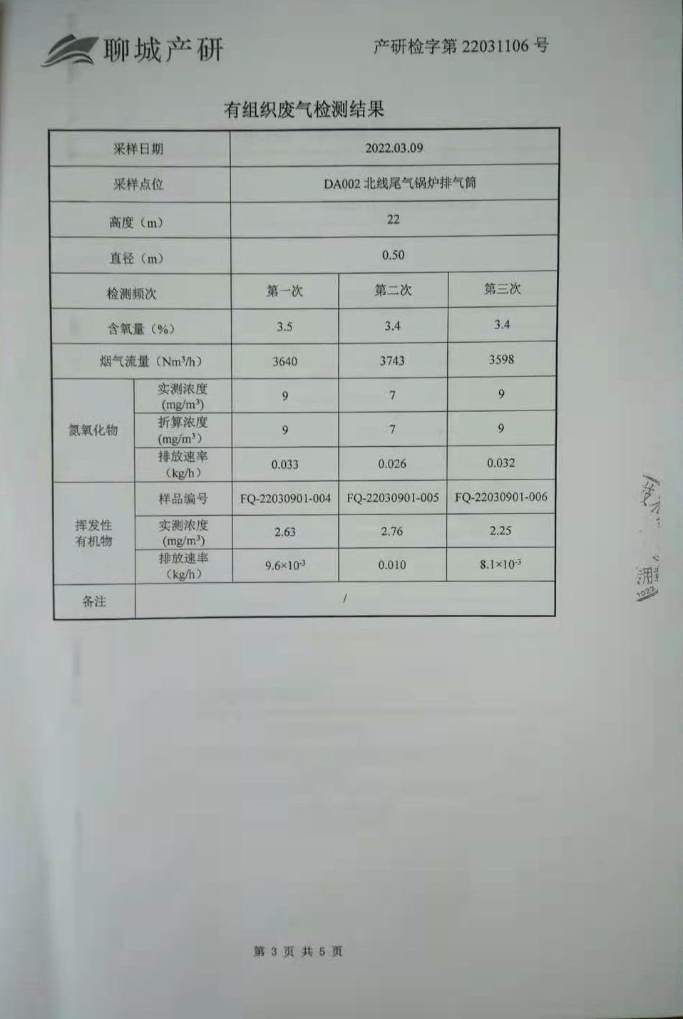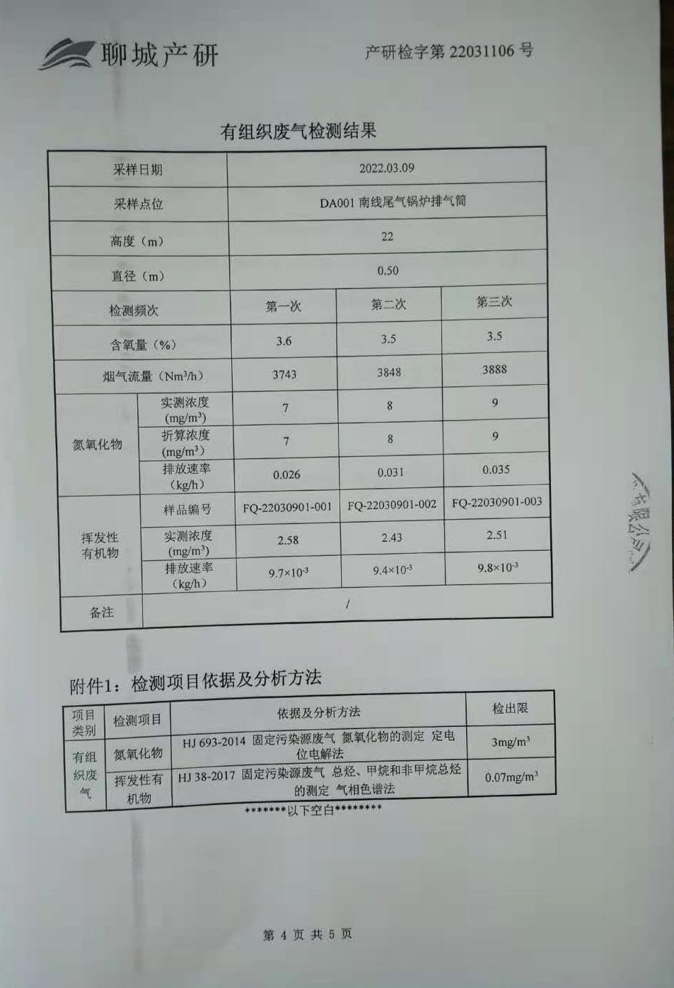 有組織廢氣檢測報告