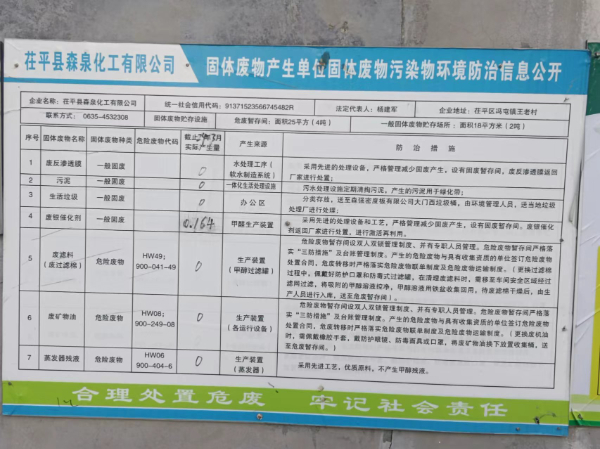 7 | 蒸發器殘液 | 危險廢物 | HW06 900-404-06 | 生產裝置 (蒸發器) | 采用先進工藝,優質原料,不產生甲醇殘液。 |