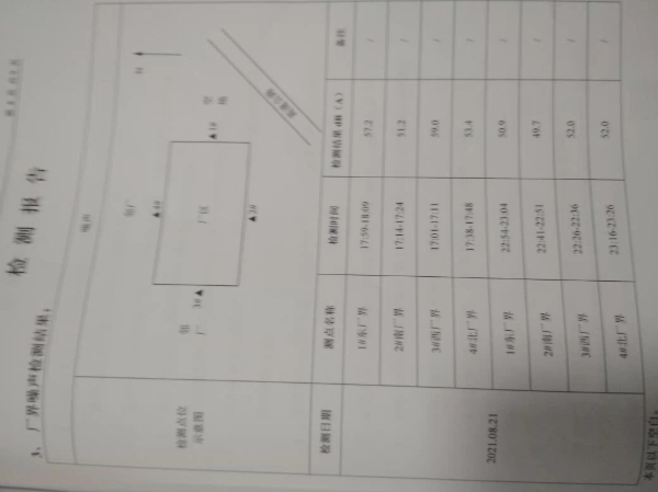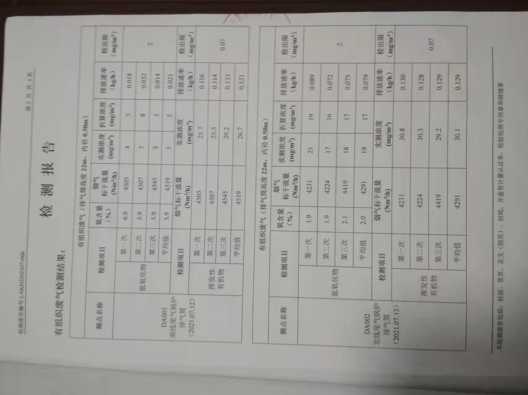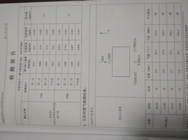 2021年8月30日南北線尾氣處理器排氣筒有組織排放、廠區無組織排放、噪聲檢測;